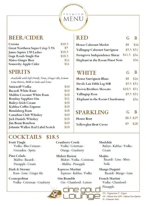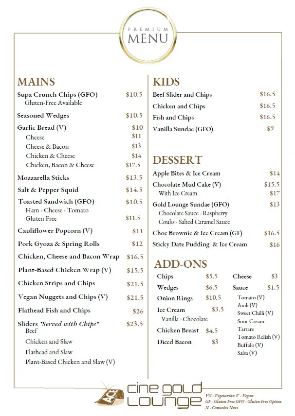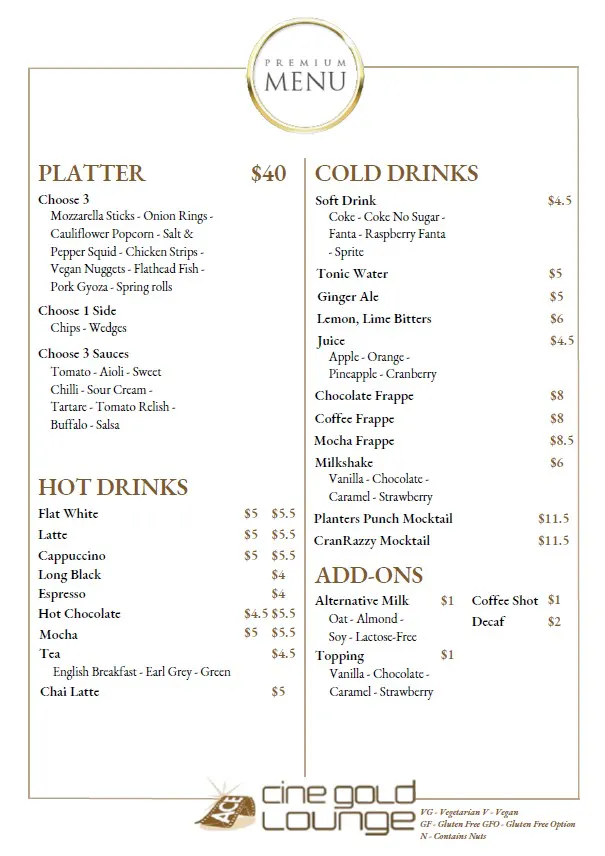 Gold Lounge Menu